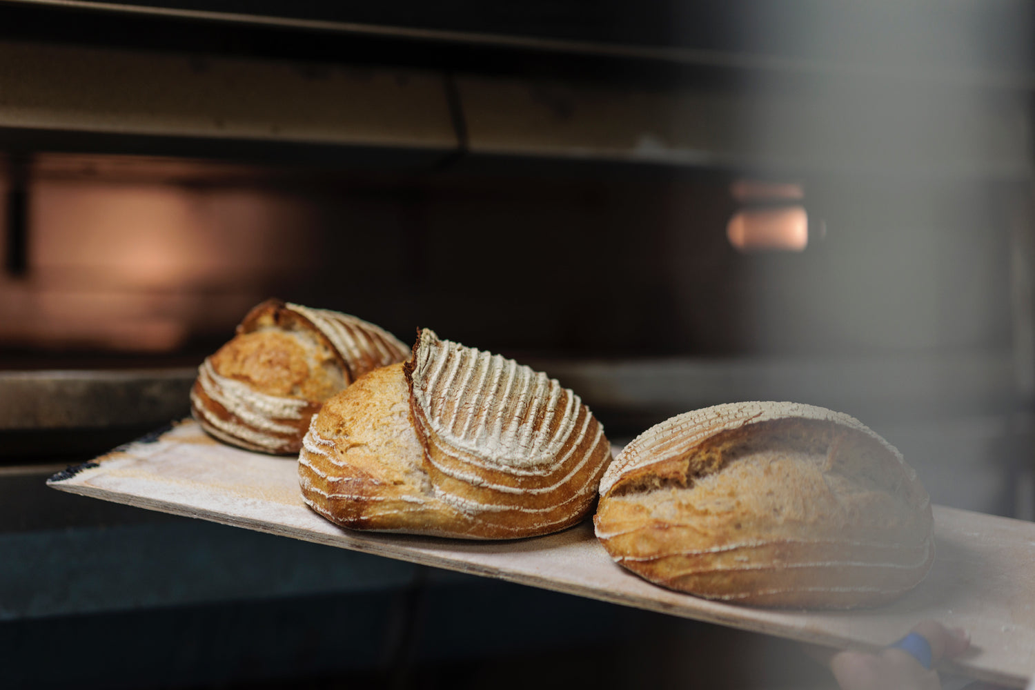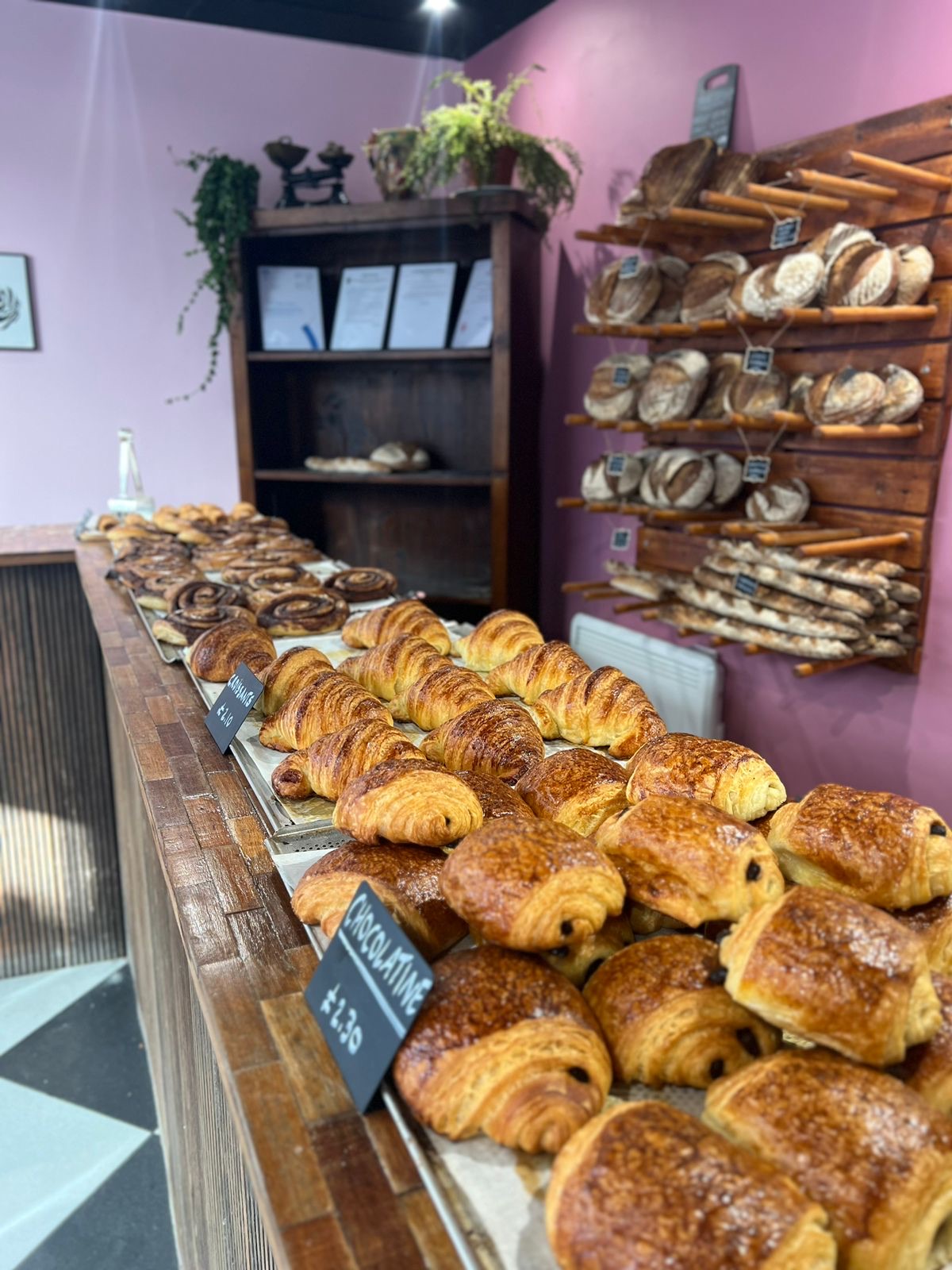 From Tuesday to Saturday you'll find our counter fully stocked with freshly baked sourdough bread, baguettes, focaccia, sandwiches, croissants, chocolatine (aka pain au chocolat), cinnamon buns, chocolate brownies as well as seasonal and special delights all handmade by our in-house bakers (who you can watch at work). We also serve delicious coffee using with our speciality Four Bakery house blend beans.